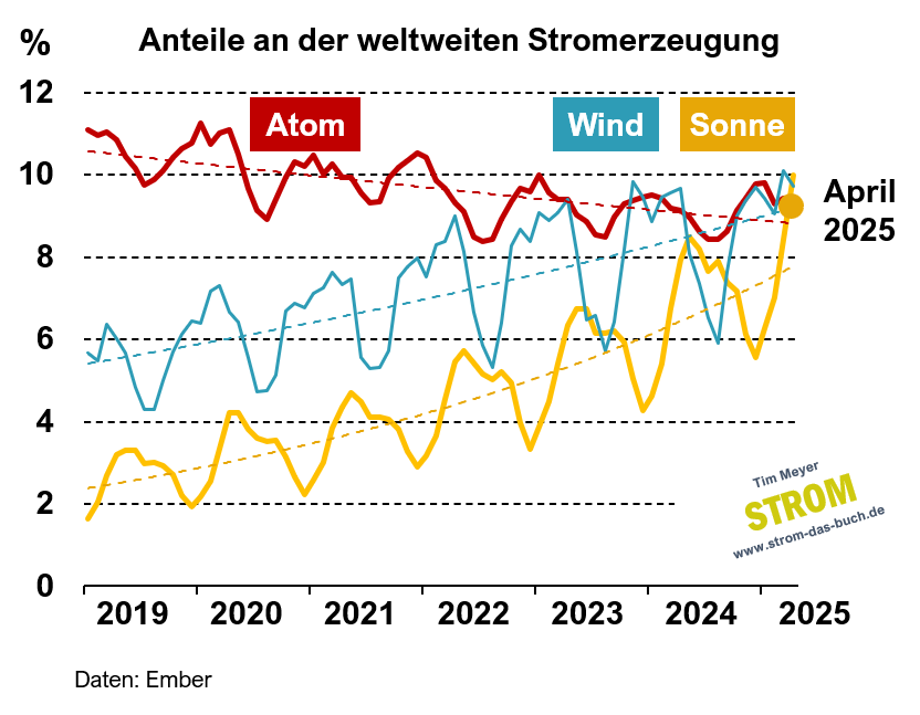April 2025: erstmals weltweit mehr Solar- als Atomstrom