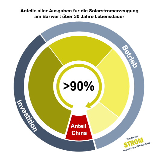 Auch mit chinesischen PV-Modulen ist Solarenergie in Deutschland vor allem ein heimisches Geschäft: der weitaus größte Teil der Investition sowie Ausgaben für Betrieb, Finanzierung und Steuern bleiben in Deutschland und Europa.