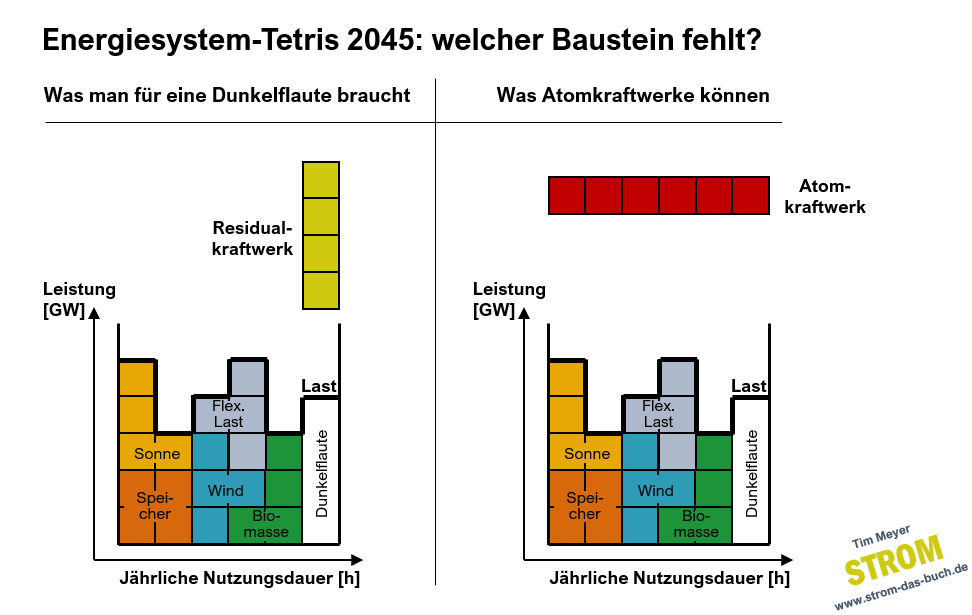 Auch die Zeitachse passt nicht: bis ein AKW-Baustein unten angekom-men ist, gehen >15 Jahre ins Land. Bis dahin sieht das Spielfeld ganz anders aus: Batterien, E-Autos, Wärmepumpen und neue Geschäfts-modelle zu flexiblem Verbrauch haben das System weiter umgekrempelt.